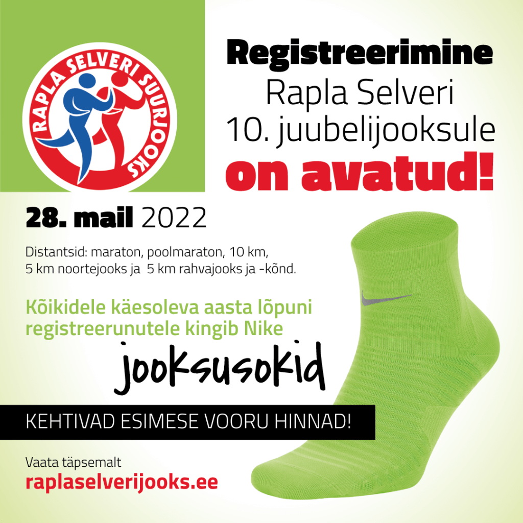 Registreerimine 10. Rapla Selveri Suurjooksule on nüüd avatud.